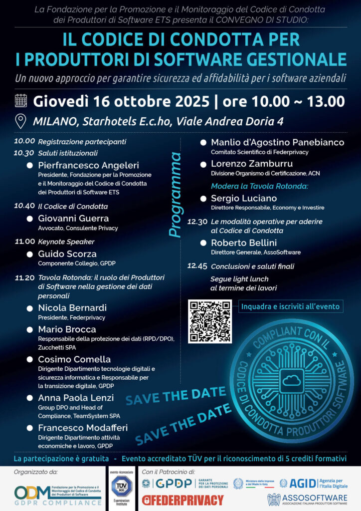 Convegno “Il Codice di Condotta per i produttori di software gestionale” – 16 ottobre 2025, Milano
